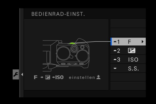 Wem diese traditionelle Bedienung nicht so liegt, kann die wichtigen Einstellungen im umfangreichen Konfigurationsmenü auf das vordere und hintere Drehrädchen legen. So habe ich den Blendenring auf «A» geparkt, der standardmässig automatisch arbeiten würde, jedoch im Ring- und Rad-Einstellungsmenü von «Auto» auf «Befehl» geschaltet. Das Verschlusszeit-Rad noch auf «T» stellen, und schon lässt sich mit dem vorderen Rädchen bequem die Blende verstellen, nach einem Druck darauf der ISO-Wert anpassen und am hinteren Rädchen die Verschlusszeit über den gesamten Bereich regeln.