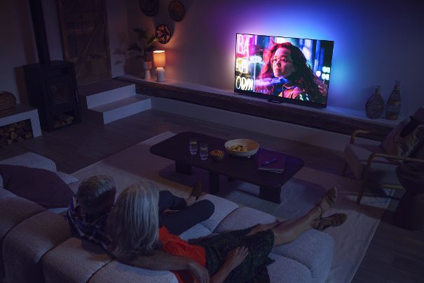 Im Heimkino-Einsatz fühlt sich der Philips 55OLED908 besonders wohl. Das dreiseitige Ambilight in der neuesten Version kreiert ein geschmackvolles Lichtambiente.