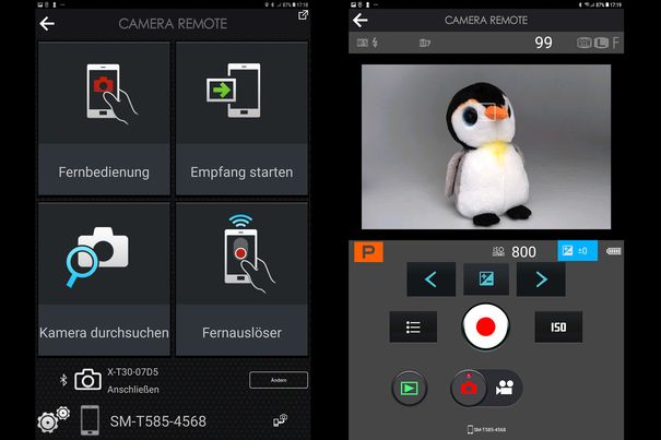 Blende, Verschlusszeit, ISO-Wert, Weissabgleich, Filmsimulation, Blitzmodus oder Belichtungskorrektur lassen sich über das Smartgerät verändern. Im Fernauslöser-Betrieb dient das Smartphone oder Tablet als einfache Start/Stop-Taste. Dabei ist nur die energiesparende Bluetooth-Verbindung notwendig.