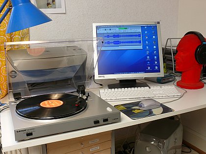 Also Tonabnehmer über die Platte geschoben, beim Audioeditor auf die Rec-Taste gedrückt.
