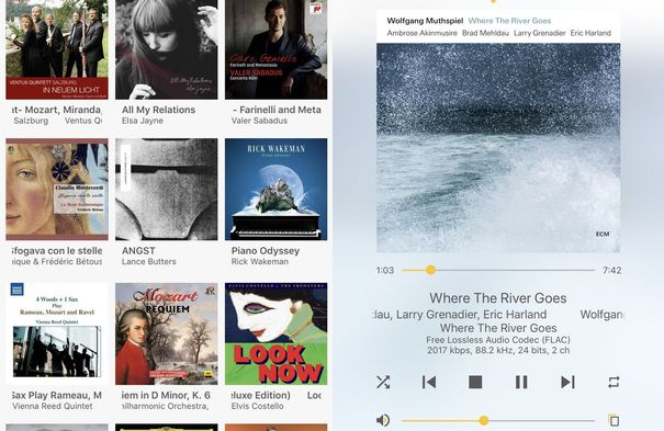Direkte Wiedergabe eines Hi-Res-Tracks des Streamingdienstes Highresaudio mit der Lindemann-App auf dem iPad.