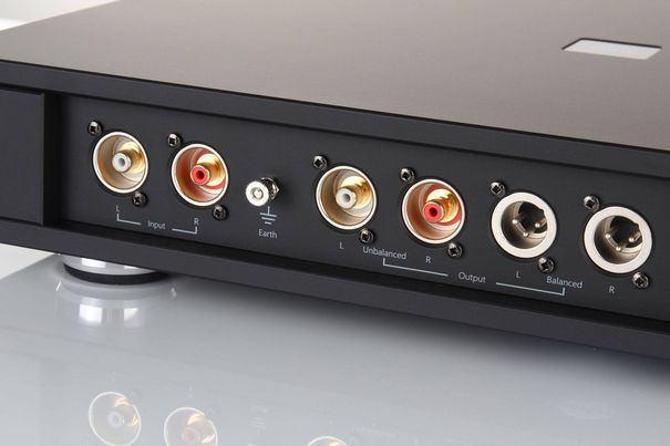 Anschlussfeld: eher spartanisch. Ein Cinch-Eingang für MC sowie ein Cinch- und ein symmetrischer XLR-Ausgang müssen für Regas Aura reichen.Ausstattung