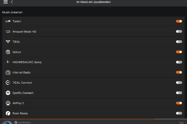 In den Geräteeinstellungen lässt sich auswählen, welche Musikdienste in der Vitos-Orbiter-App angezeigt werden.