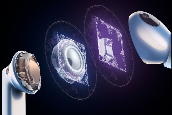 Explosionsgrafik mit den Treibern der Freebuds Pro 2.Mit der Unterstützung des LDAC-Codecs kommen zumindest Benutzer von Android-Smartphones in den Genuss einer deutlich erhöhten Bandbreite in der Bluetooth-Übertragung. Mit LDAC beträgt diese bis zur 990 kbit/s und kommt somit in die Nähe des CD-Formats mit 1411 kbit/s. Der von Sony lancierte LDAC-Codec erlaubt eine beinahe vierfach höhere Bandbreite über Bluetooth als es zum Beispiel mit einem iPhone möglich ist.