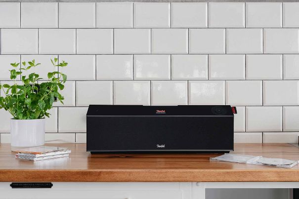 Beim neuen Modell handelt es sich bereits um die zweite Musicstation von Teufel. Das Gerät ist genug gross für eine ansprechende Stereo-Klangbühne, hat aber dank ihrer doch noch kompakten Dimensionen von 53 x 18 x 10 cm gut auf einem Sideboard, in einem Regal oder auf der Küchenzeile Platz.